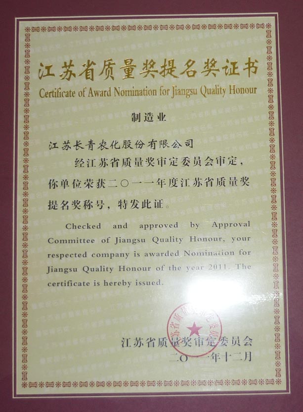 江苏省质量奖提名奖