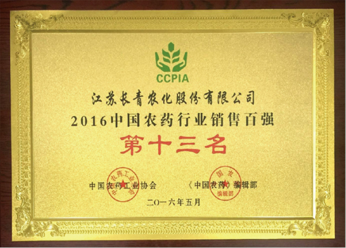 2016中国农药行业销售百强第十三名
